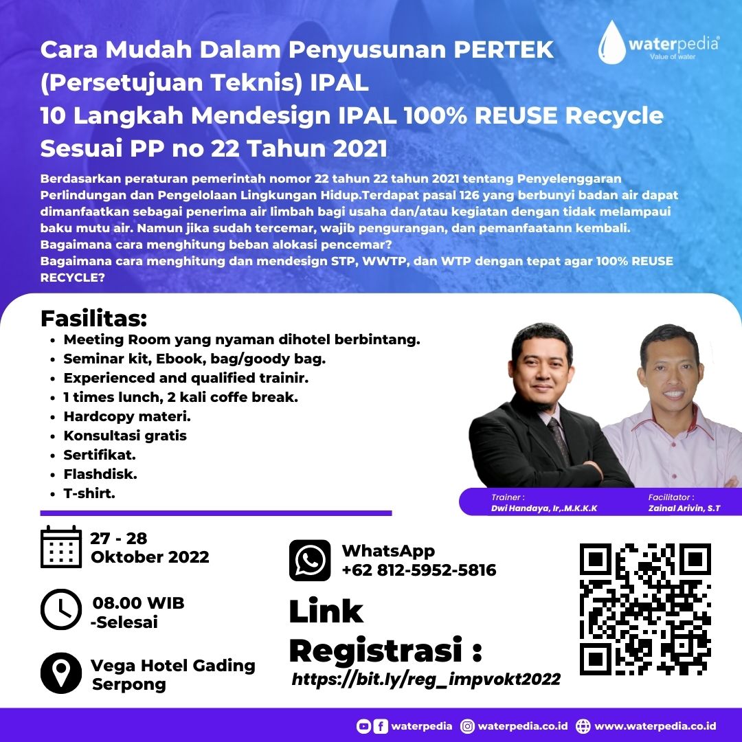 Training Penyusunan PERTEK IPAL 10 cara mendesign WTP, WWTP, STP 100% REUSE RECYCLE Sesuai PP 22/2021